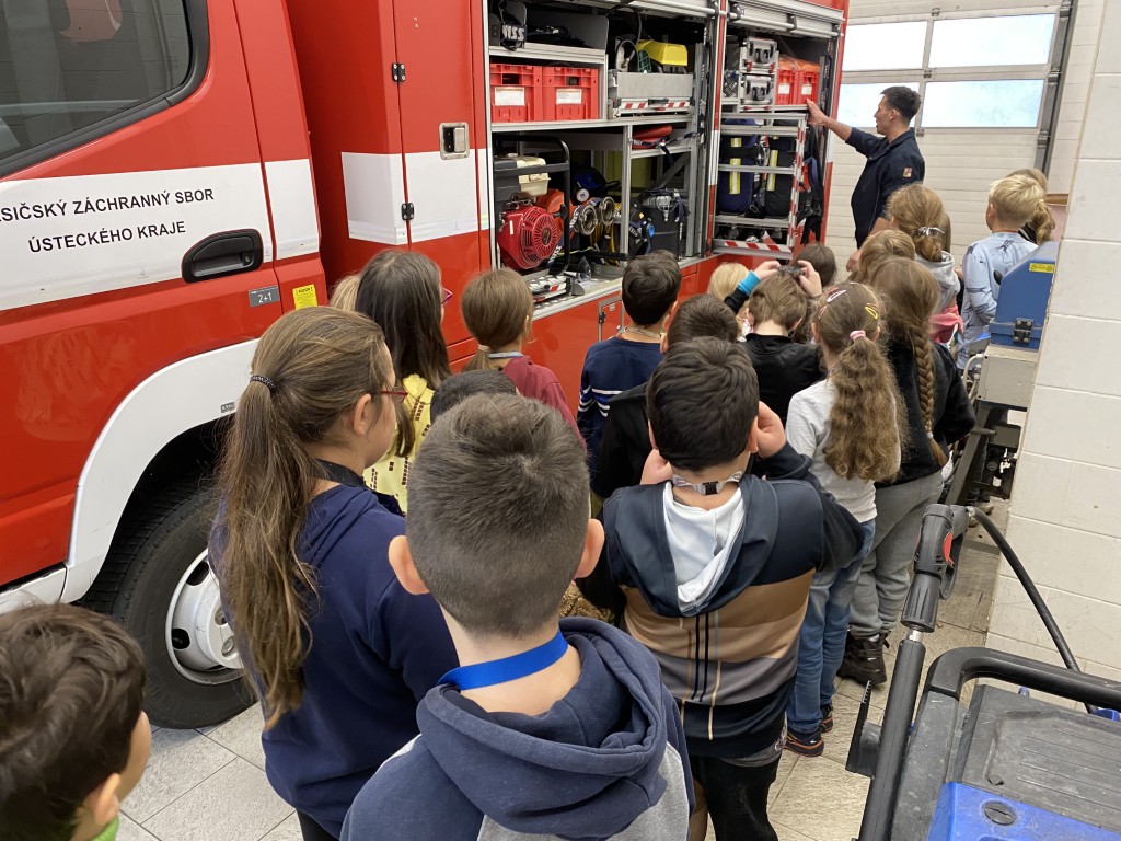 Děti ze školní družiny č. 4 a 2 se vydaly na zajímavou exkurzi k místním hasičům. S velkým nadšením si prohlédly hasičská auta, vyzkoušely si, jak těžká je výstroj, a zjistily, k čemu slouží různé hadice, přilby a další vybavení. Nechyběly samozřejmě ani sirény a blikající majáky, které sklidily největší nadšení. Celá návštěva byla nejen poučná, ale i zábavná – děti odcházely plné zážitků a s obdivem k práci hasičů.