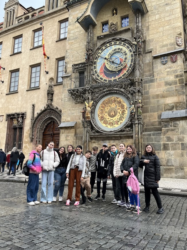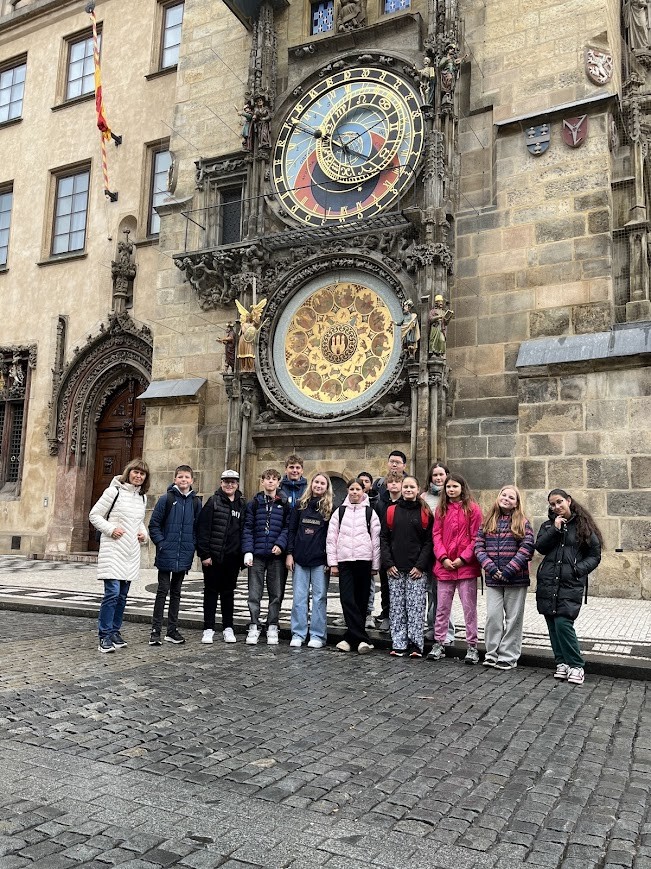 Ve středu 22. října jsme vyjeli se svými třídními učiteli do našeho hlavního města. Procházka Prahou nás nejdříve zavedla na Staroměstské náměstí. Tady jsme se zastavili před Staroměstským orlojem. Učitelé nás také upozornili na 27 křížů v dlažbě, které připomínají popravu 27 českých pánů v červnu 1621.