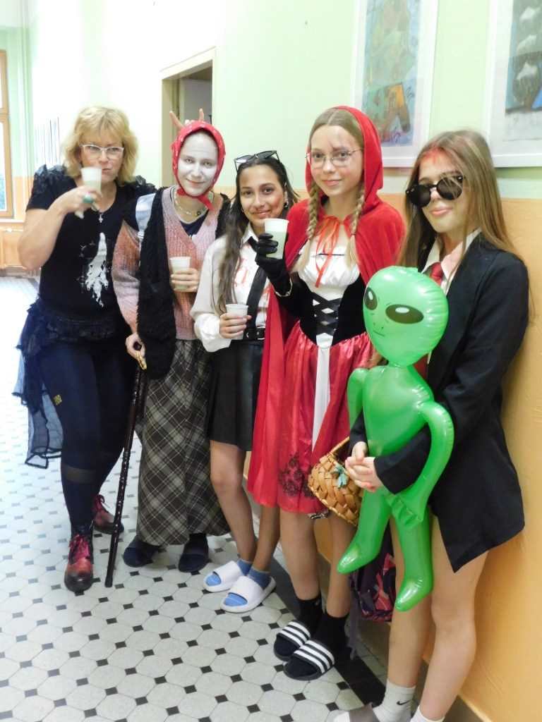 Letošní Halloween jsme se na II. stupni ZŠ Školní rozhodli pořádně oslavit. V pátek 31. 10. 2025 nesli žáci do školy velmi zvláštní pomůcky a v 8 hodin se už po chodbách proháněla děsivá strašidla, hororové postavy a obludy všech tvarů a velikostí. Všichni využili svou fantazii či inspiraci na maximum.