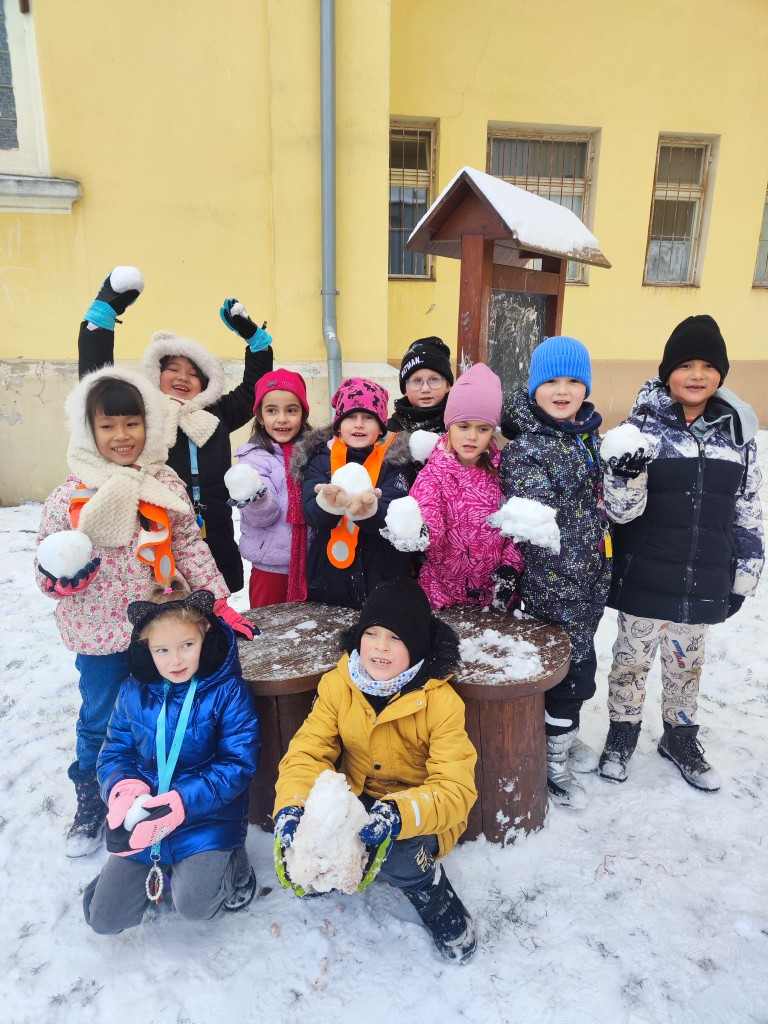 Začalo velké sněhové řádění. Někteří se pustili do stavby sněhuláků – vznikla tak celá sněhová rodinka, jiní se vrhli do koulovaní a nechyběla ani pořádná sněhová bitva.