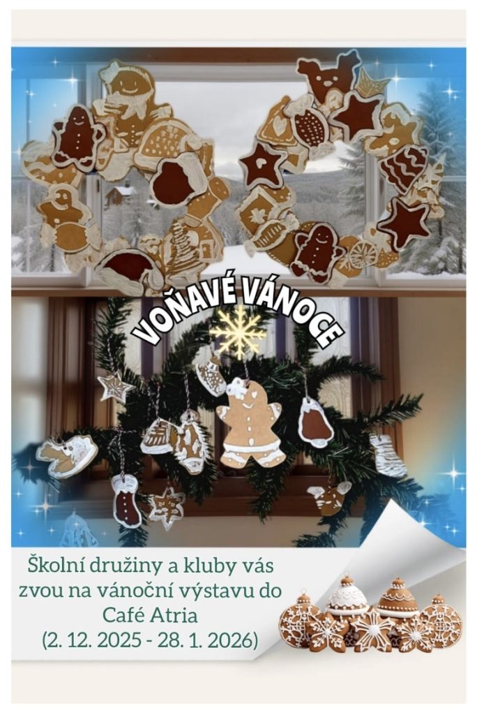 Děti ze školních družin a klubů Vás srdečně zvou na výstavu „Voňavé Vánoce“ v Café Atrium. Přijďte se naladit na sváteční atmosféru a podívat se na jejich krásné vánoční výrobky plné kreativity a radosti.