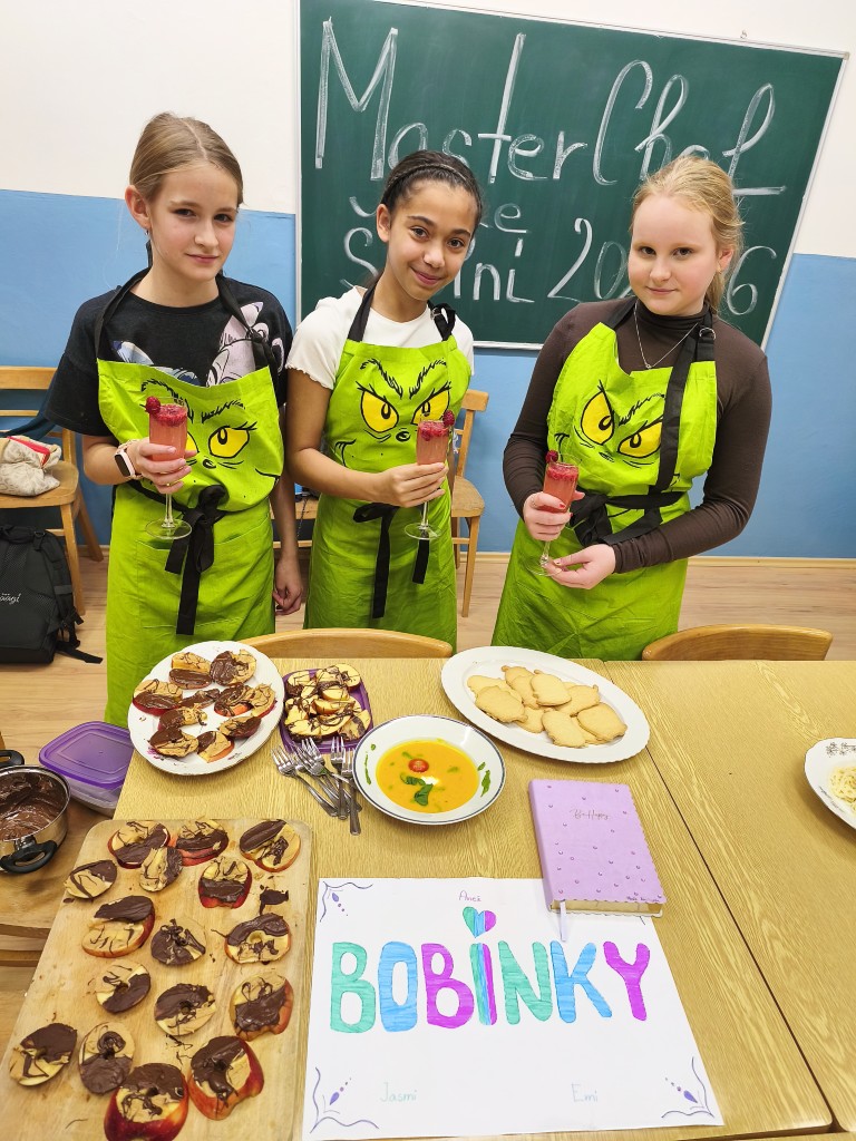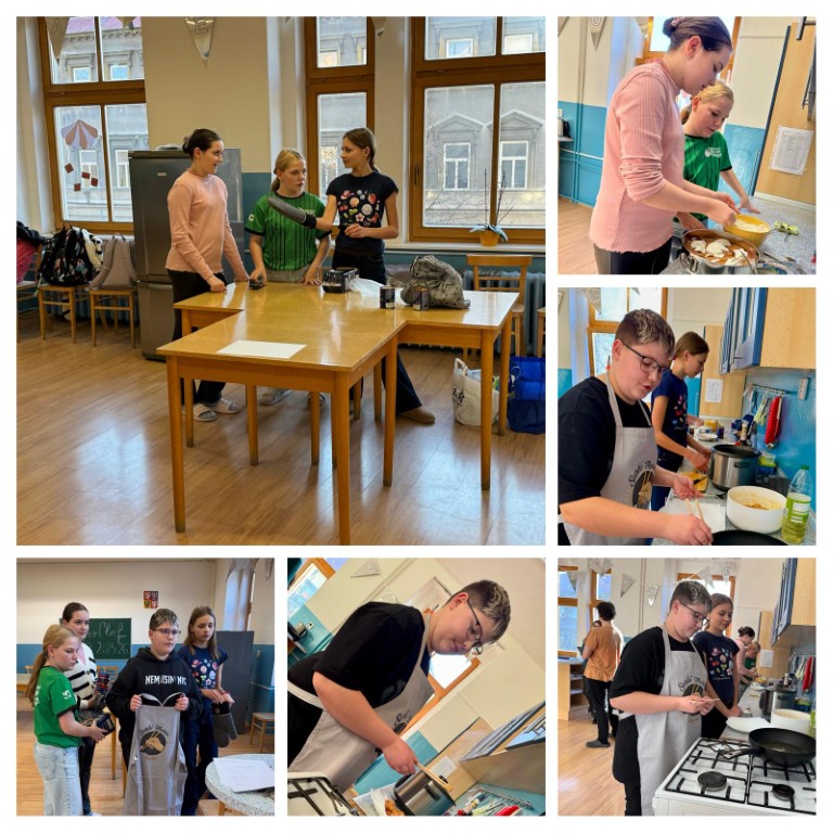 Koncem listopadu začaly na ZŠ Školní kulinářské souboje. Ve školní kuchyni se odehrává soutěž MasterChef ze Školní. Soutěžící dopilovali své recepty, vyšperkovali své jídelníčky a oblékli si kuchařské zástěry. Porota každé pondělí pečlivě uděluje body za spolupráci a bezpečnost v týmu, hygienu při vaření, vzhled a chuť pokrmů. Domů se jde vždy s plnými žaludky, spokojenými mlsnými jazýčky a novými náměty na vaření. Amatérské kuchaře a kuchařky velmi chválíme za jejich výborné pokrmy i přátelskou a milou atmosféru. Již se velmi těšíme na nová soutěžní kola, kde nás čekají např. dortová klání. Za zápal a odvahu jsou pro soutěžící připraveny zajímavé ceny.