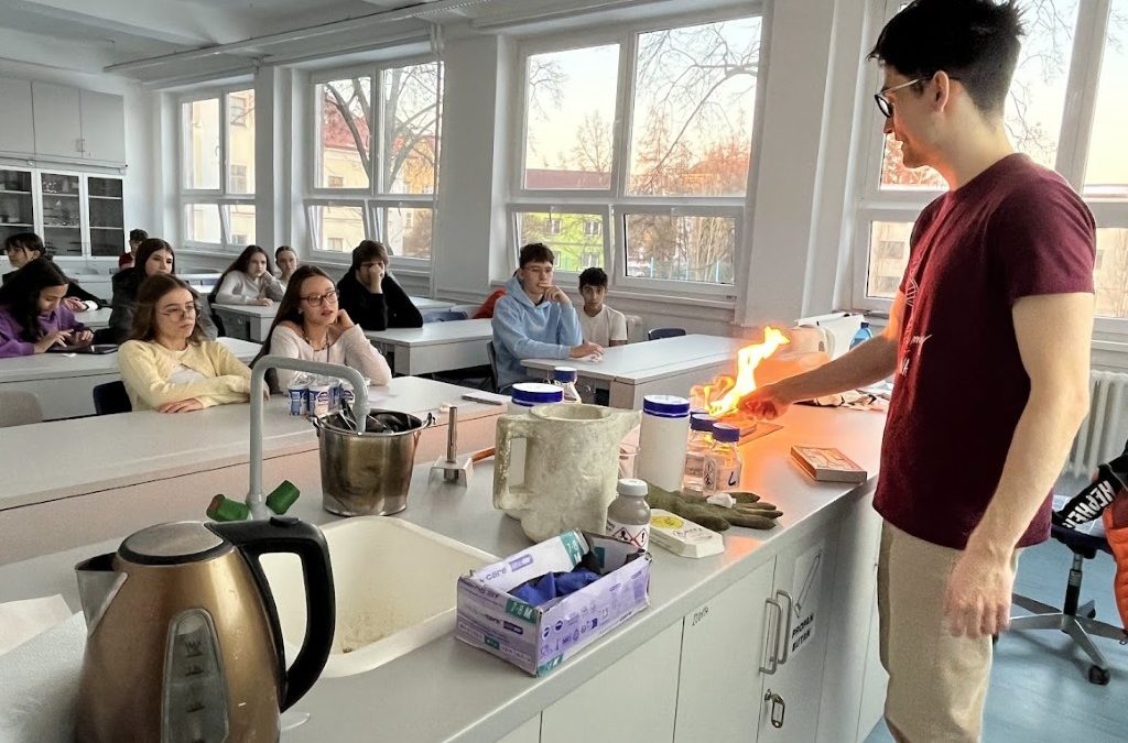 19. ledna k nám přijeli studenti z Vysoké školy chemicko-technologické v Praze se svým projektem nazvaným Hodina moderní chemie. Akce se zúčastnili všichni žáci osmých a devátých tříd. Učebna chemie se na celé dopoledne proměnila na chemickou laboratoř, kde látky měnily barvy jako semafor na křižovatce, hořely plamenem barev ohňostroje nebo nečekaně vybuchovaly. Závěrem poutavé chemické show si děti mohly vybrat barvu a chuť smetanové zmrzliny vyrobené za pomoci kapalného dusíku, na které si o přestávce pochutnaly.