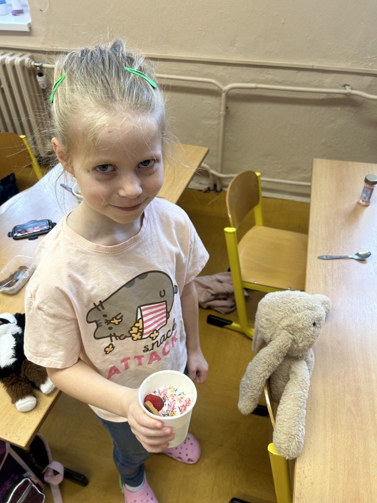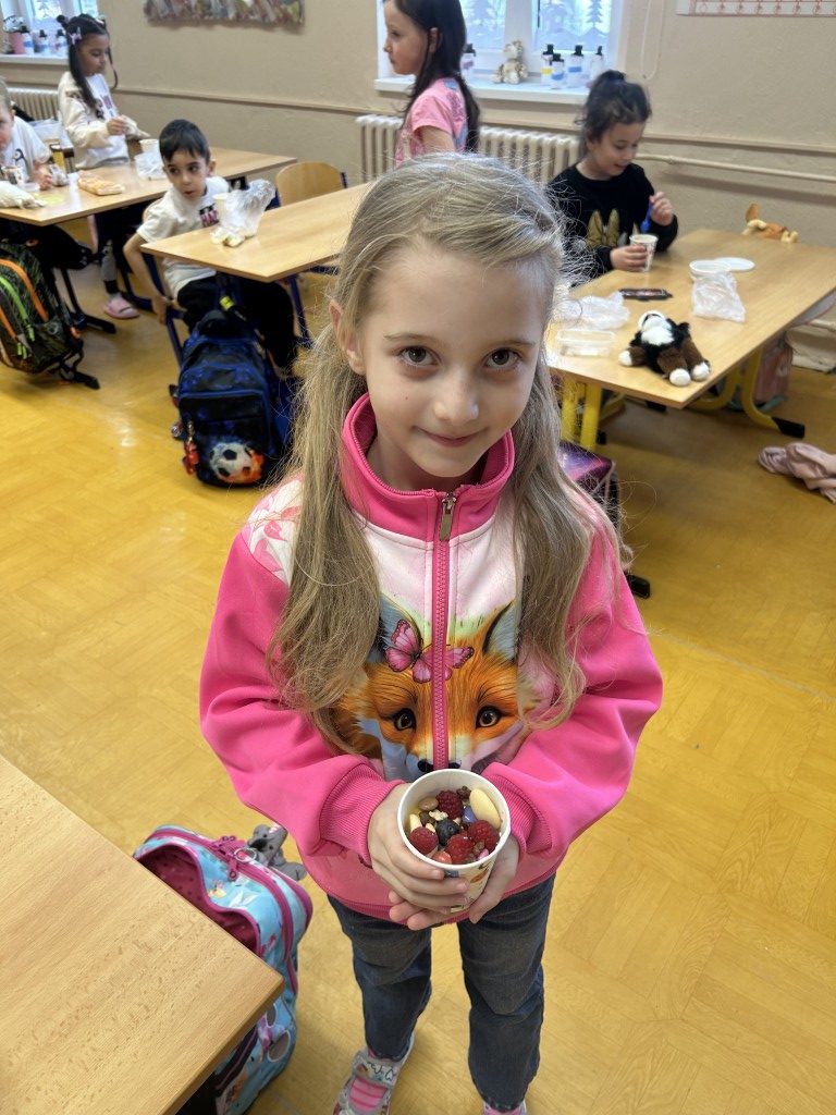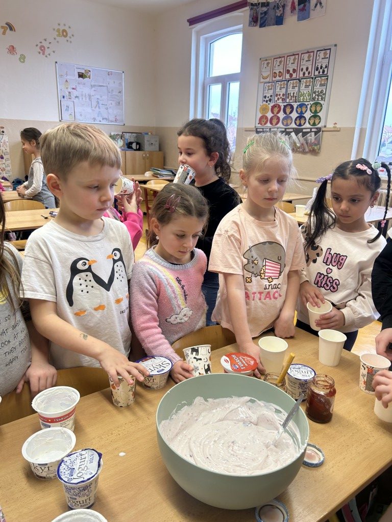 V rámci školního projektu 2025/ 2026 MLÉKO DO ŠKOL všechny třídy obdržely „ochutnávkový koš“. Měli jsme tak možnost ochutnat několik druhů mléčných výrobků (tvaroh, skyr, bílý jogurt). My jsme si z nich připravili výtečné poháry a měli radost, že i zdravé může být tak chutné. 😋“