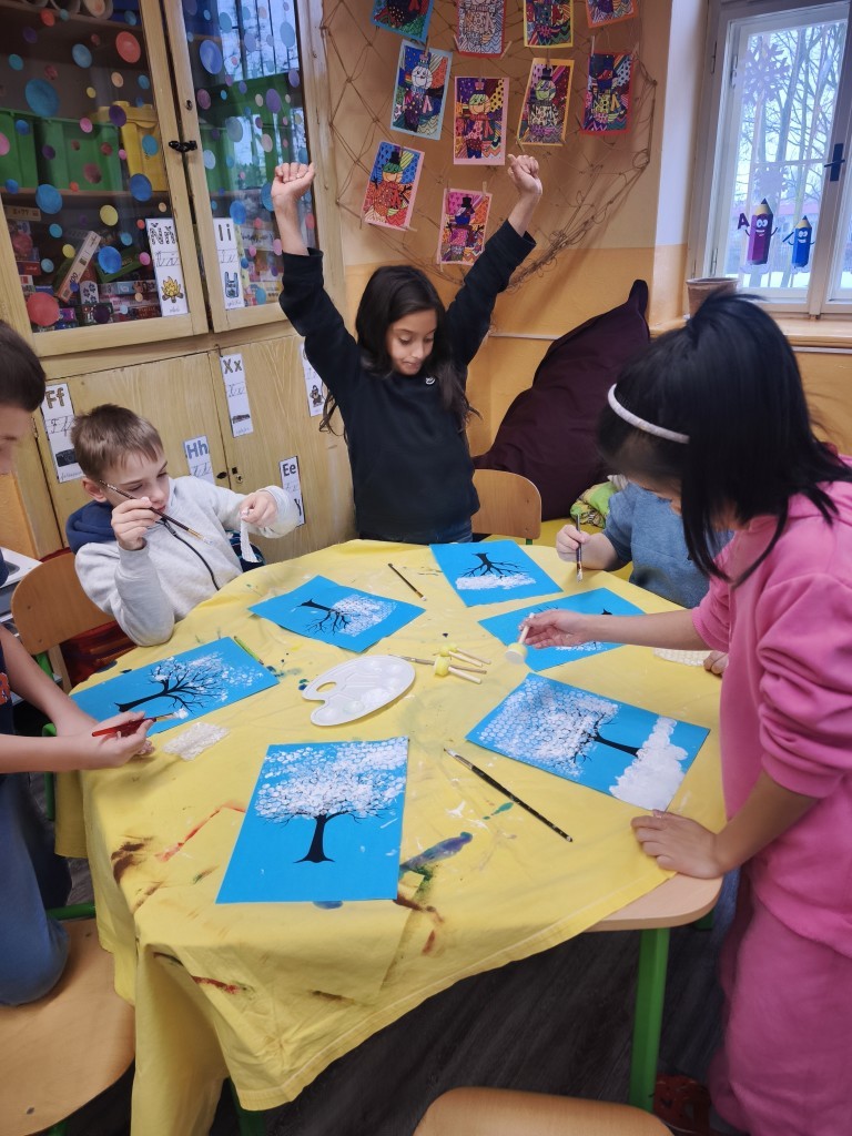 Zimní lednové dny ve školní družině jsme si zpříjemnili tvořením inspirovaným zimní přírodou. Děti pracovaly s papírem, vatou i barvami a vznikaly sněhuláci, zimní krajiny, vločky i ledové království plné fantazie. Tvoření podporovalo jemnou motoriku, kreativitu i spolupráci mezi dětmi. V příjemné atmosféře jsme společně objevovali, že i chladné lednové počasí může být plné barev, nápadů a radosti. ❄️🎨