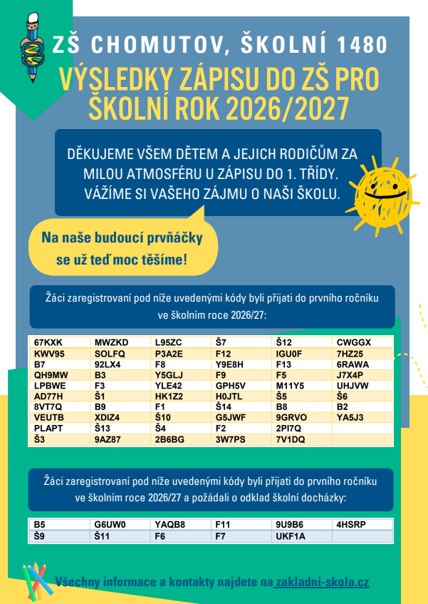 Výsledky zápisu do ZŠ pro školní rok 2026/2027
