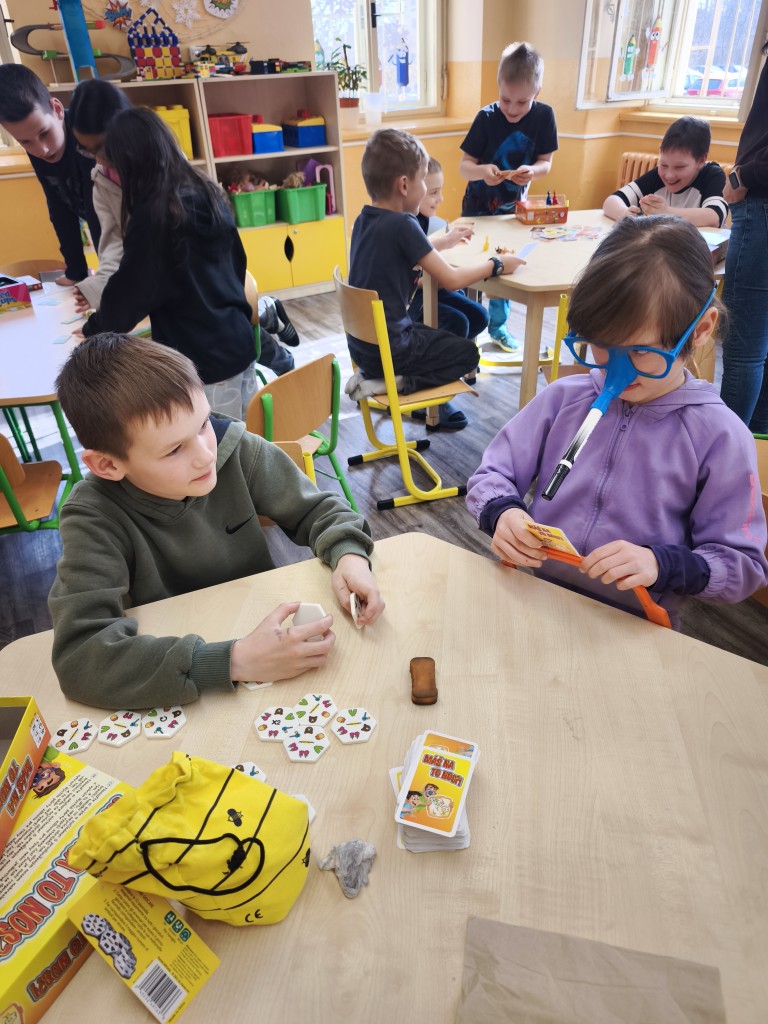 Tento týden nás ve školní družině navštívil kouzelný pán, který nám přinesl mnoho nových i známých deskových her. Děti měly možnost vyzkoušet si různé hry zaměřené na postřeh, logické myšlení i spolupráci. Během odpoledne panovala velmi příjemná a veselá atmosféra. Některé hry děti dobře znaly, jiné pro ně byly úplně nové, a proto si s nadšením vyzkoušely něco jiného než obvykle. Společné hraní dětem přineslo nejen radost a zábavu, ale také příležitost naučit se dodržovat pravidla, spolupracovat s ostatními a užít si příjemný čas se svými kamarády.